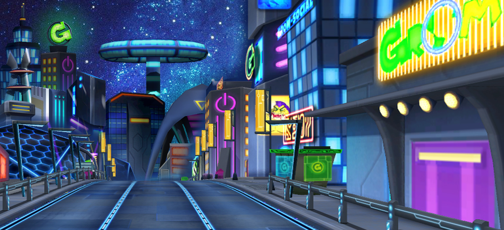 Ready to skate into the future? Techtopia is going to blow you away! It’s the furthest planet out in the Gromarama5 Solar System but it shines like a star – it’s all blue steel, high-rise and neon. Techtopia is the home planet of Grom Helper, Developer Dan. The Gromarama5 Solar System depends on Techtopia for all of their new technology and innovations so you better be ready for the unexpected. Anything goes on Techtopia!